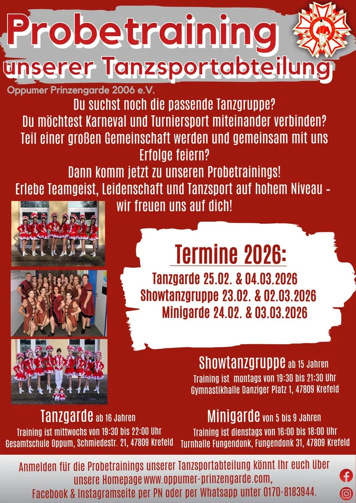 Tauche ein in unsere Gemeinschaft, lerne unsere Tanzgarden kennen und werde Teil unserer närrischen Familie. Wir freuen uns auf dich und auf eine fröhliche, bunte Karnevalszeit!