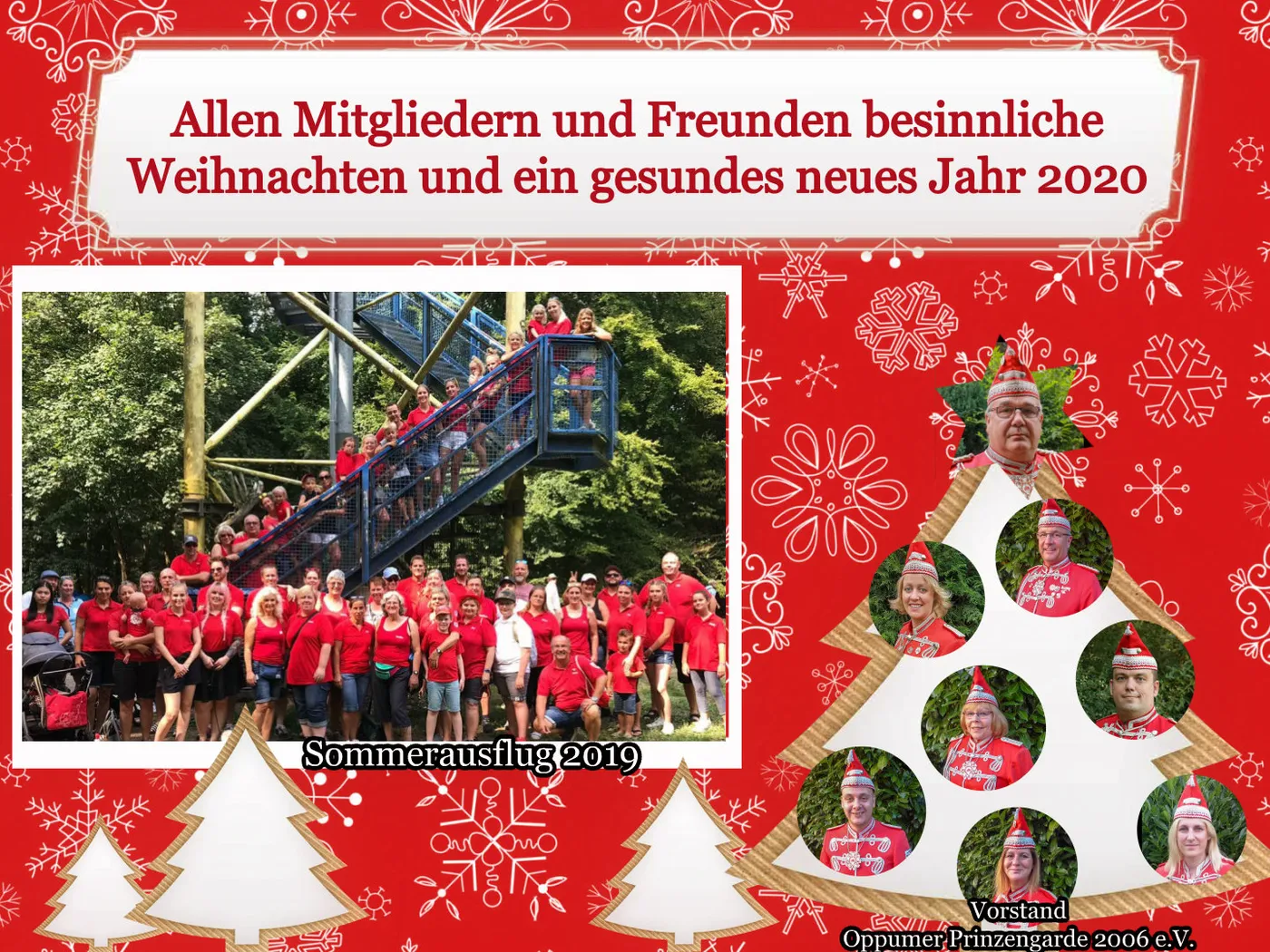 Der Vorstand der Oppumer Prinzengarde bedankt sich an dieser Stelle bei allen Freunden, Förderern und Mitgliedern für das Engagement im vergangenen Jahr und wünscht allen eine besinnliche Weihnachtszeit und einen guten Rutsch in ein hoffentlich gutes, vor allem aber gesundes neues Jahr 2020