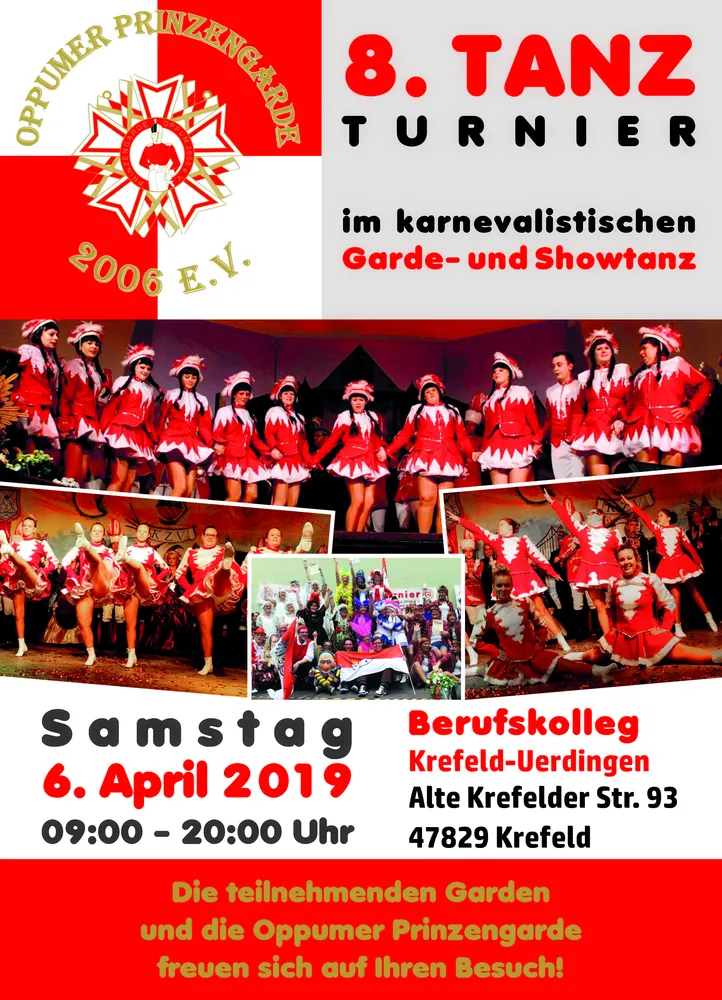 Am vergangenen Samstag, 06.04.2019 fand nun bereits zum 8.Mal das Tanzturnier im karnevalistischen Garde-und Showtanz der Oppumer Prinzengarde 2006 e.V. erstmalig im Berufskolleg Uerdingen.