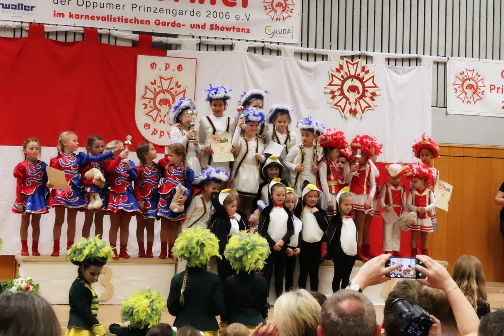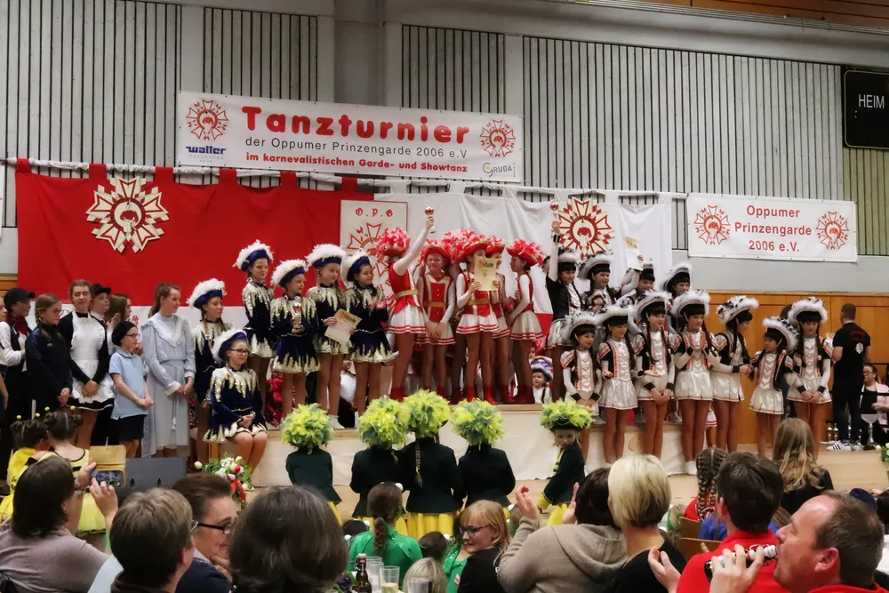 Wahnsinn wie weit der gute Ruf dieses Turnier mittlerweile reicht – die Prinzengarde freut sich sehr. Natürlich nahmen auch die Mini-,Jugend- und Große Garde der Oppumer Prinzengarde teil. Die größeren Räumlichkeiten des BKU Uerdingen waren optimal, denn bereits am Vormittag schauten sich knapp 1000 Zuschauer dieses tollen Tanzspektakel an. Gerade die „Kleinen“ im Alter von 3-7 Jahren wussten das Publikum zu begeistern.